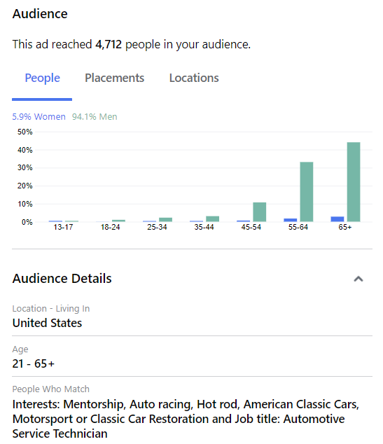 CAPTION: Send2Press Social Boost Facebook Audience Metrics for Campaign