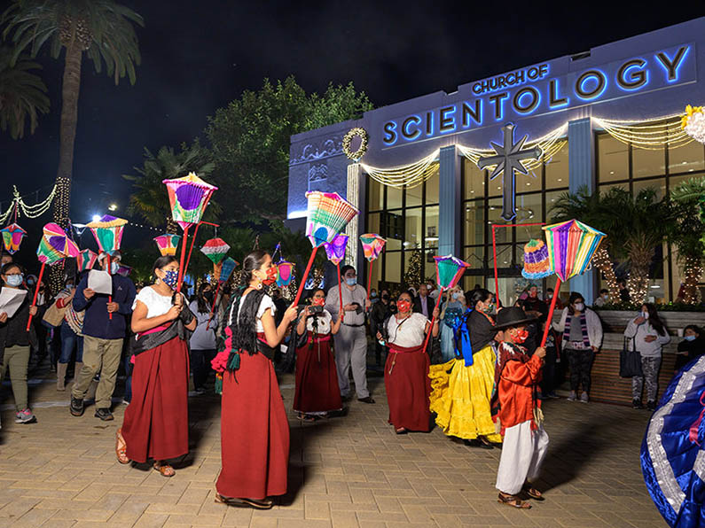 La Posada, which celebrates the journey of Mary and Joseph to Bethlehem, includes singing and dancing in a unique blend of cultures. Musicians from a Oaxacan community band led the procession. The Church of Scientology Los Angeles hosted the celebration as part of its commitment to honor and help preserve the traditions and culture of the many diverse communities that call Los Angeles home.
