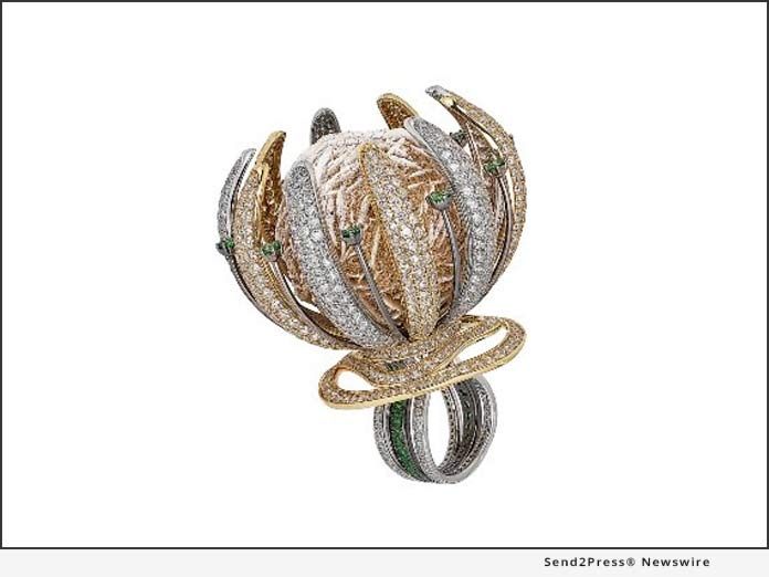 Photo caption: The Shimansky Desert Rose Ring 798 Diamonds with total carat weight 24.13ct 42 Tsavorite with total carat weight 3.11ct 58.80 Gram of 18 Karat Gold $42,000.