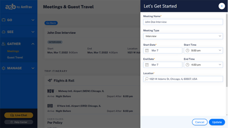 Because Gather is built into AmTrav’s one connected platform, arrangers don’t need a separate tool or login to arrange guest travel. Companies get full savings with their negotiated rates applied, and full visibility with real-time traveler location and travel spend data in their AmTrav reports.