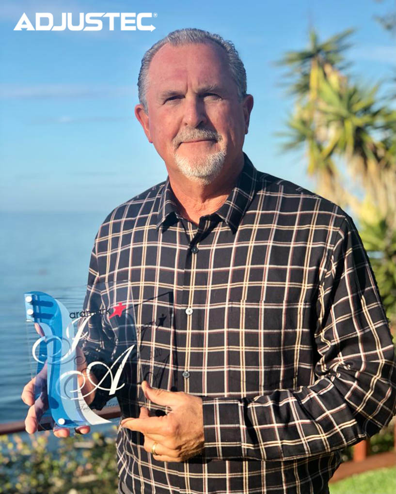*Caption: Herman Roup, President of Adjustec, Holding the Aramark 2020 Innovator Award.