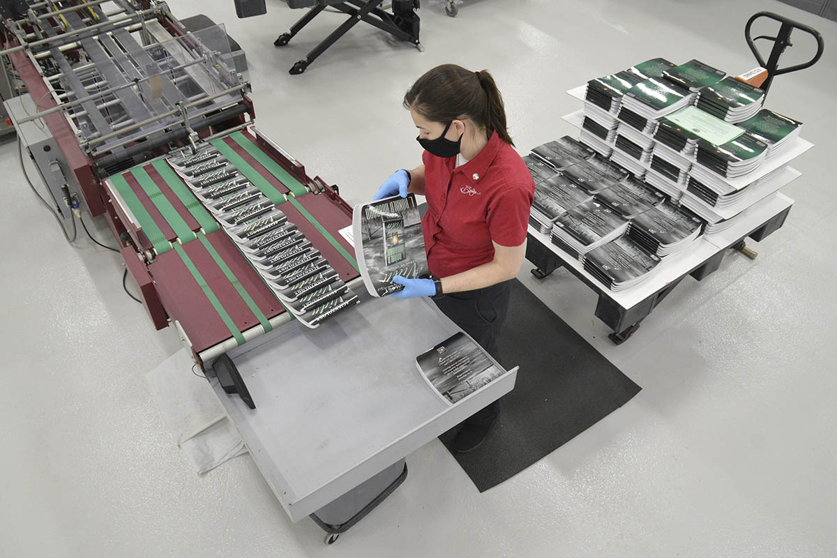 PHOTO CAPTION: Gluing and folding station at Bridge Publications.
