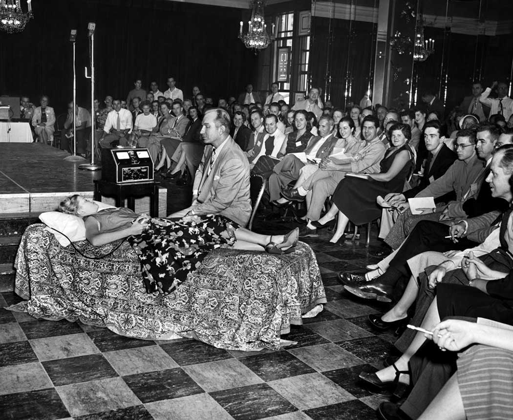 PHOTO CAPTION: L. Ron Hubbard demonstrating his discoveries on the mind, spirit and life to students in 1952.
