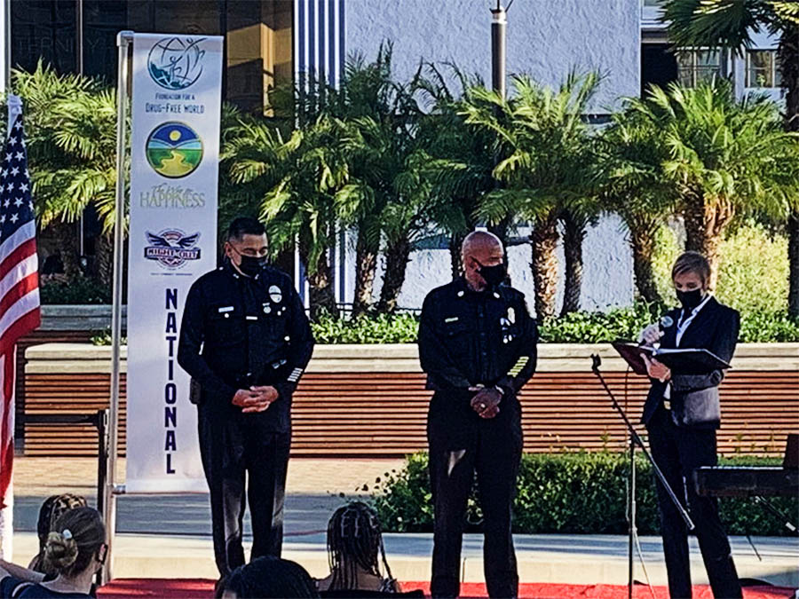 *Caption: Presenting police and firefighters with certificates of appreciation at National Night Out event at the Church of Scientology Los Angeles.