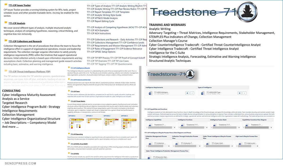 Treadstone 71’s Certified Threat Intelligence and CounterIntelligence Analyst training are the gold standard in the industry today derived from both academia, the intelligence community, and from Treadstone 71’s experience in building cyber and threat intelligence programs at Fortune 500 organizations worldwide. Treadstone 71 offers training, consulting, CyberIntellipedia (knowledgebase wiki), Conscientia (cyber intelligence lifecycle management), and intelligence team program builds and assessments.