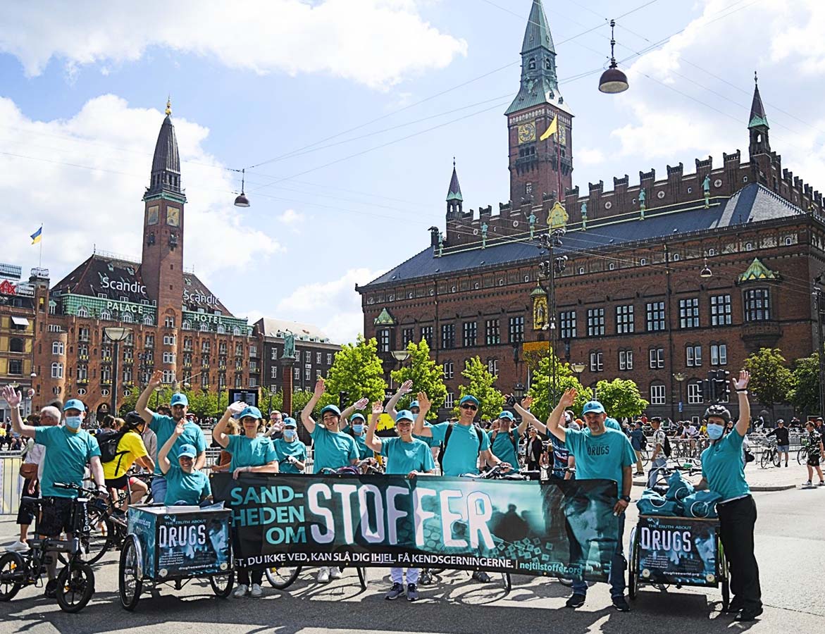 Copenhagen is known as the world’s most bicycle-friendly city, and the anti-drug cyclists from the Church of Scientology were perfectly at home with their banner and booklets, riding through the city to promote the truth about drugs.