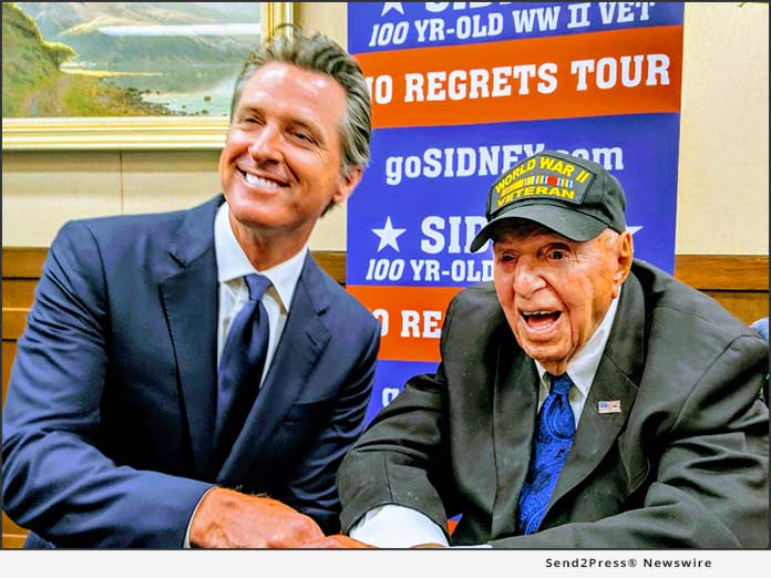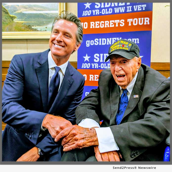SACRAMENTO, Calif., July 30, 2019 (SEND2PRESS NEWSWIRE) — Sidney Walton, age 100, one of America’s oldest WWII veterans and just back from on-stage in Normandy, met with Gov. Gavin Newsom July 29, 4:30 to 5 p.m. in the Governor’s office. The meeting was arranged by state Senator Brian Jones from San Diego County.