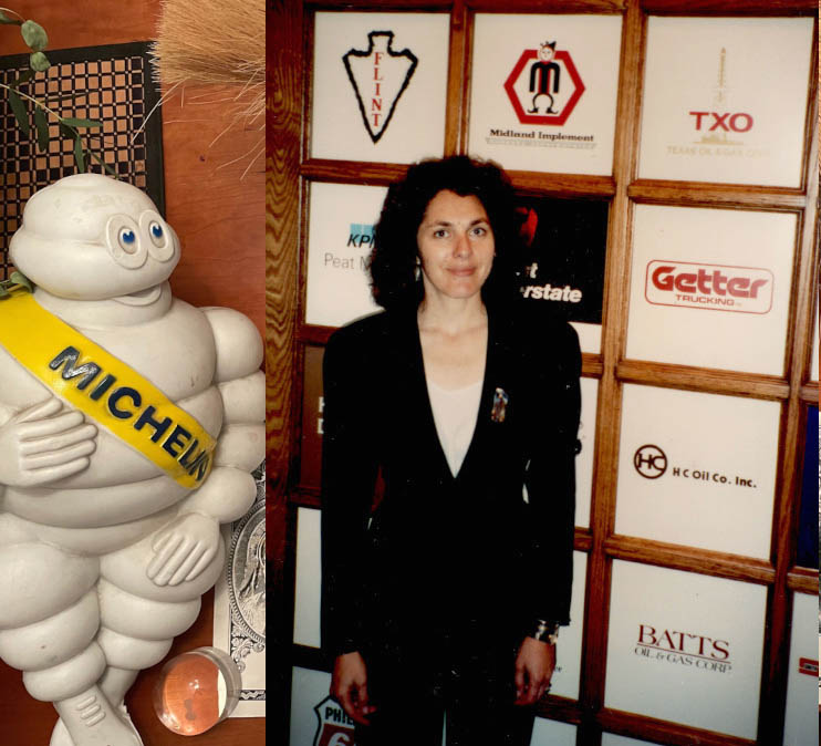 *Caption: Ellen Weis, director of the Museum of Modern Mythology, giving a slide lecture about Michelin Man and ad characters, Billings, Montana, 1991. Photo: Gordon Whiting.