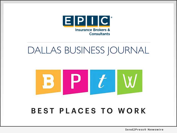DALLAS, Texas and SAN FRANCISCO, Calif., Aug. 15, 2019 (SEND2PRESS NEWSWIRE) — EPIC Insurance Brokers and Consultants, a retail property, casualty insurance brokerage and employee benefits consultant, has been recognized by their team members in Dallas as one of the 2019 Best Places to Work in North Texas in a survey conducted annually by the Dallas Business Journal.