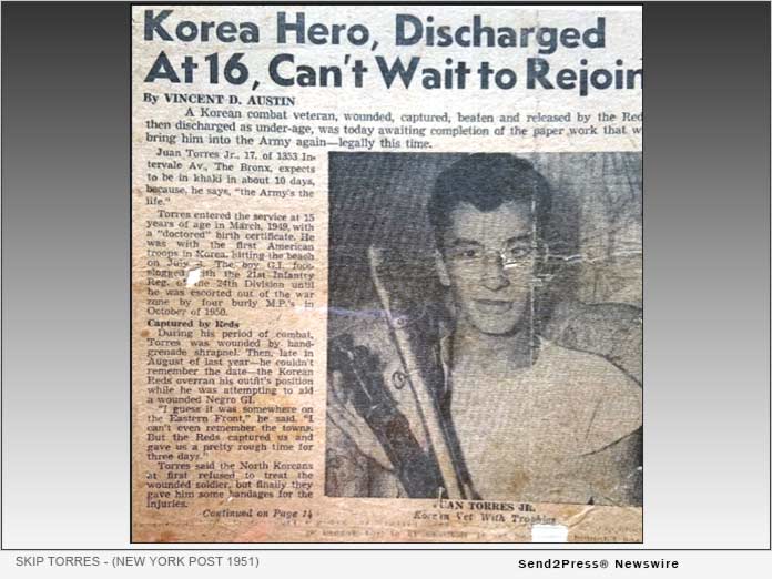 PHOTO CAPTION: Found to be underage, Skip Torres was discharged after being wounded in combat and allowed to join the US Air Force after recovery – New York Post 1951.