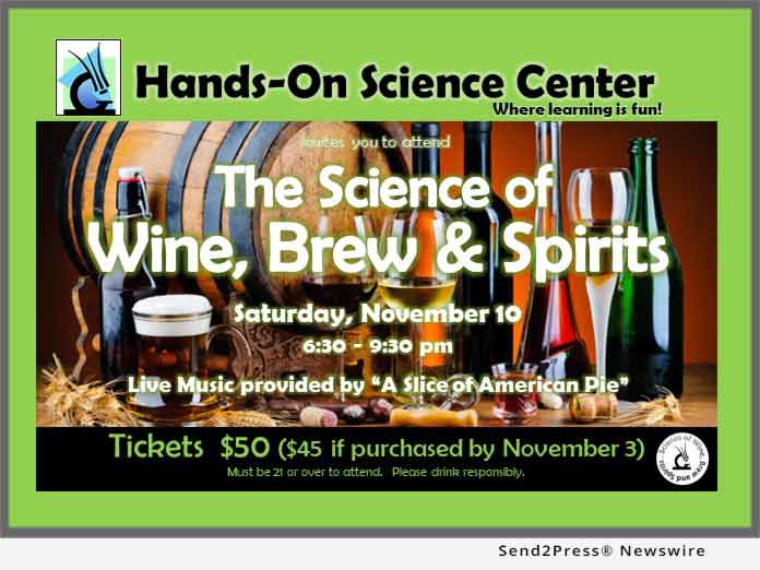 TULLAHOMA, Tenn., Oct. 16, 2018 (SEND2PRESS NEWSWIRE) — The Hands-On Science Center announces “The Science of Wine, Brew and Spirits” fundraising event November 10, 2018. Merging science education with those fun-to-drink adult beverages not only gets adults involved in the fascinating world of science but helps raise both funds and community awareness for a much-needed educational facility in the small town of Tullahoma.