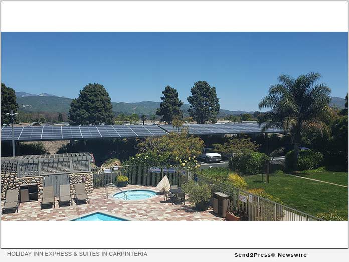 CARPINTERIA, Calif., Aug. 7, 2020 (SEND2PRESS NEWSWIRE) — Holiday Inn Express & Suites, located in Carpinteria, California, owned and operated by the HMBL, LLC, is pleased to announce the activation of their solar power generating system. The hotel has installed over 500 solar voltaic panels on new carports built in the parking lot.