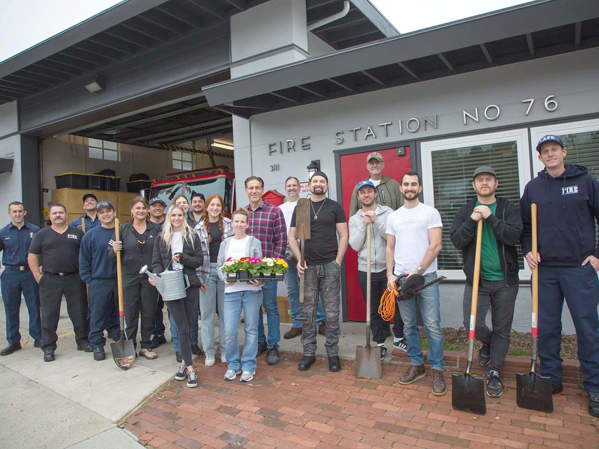 Photo Caption: Hollywood Village volunteers joined firefighters and a landscape designer to transform LAFD Fire Station 76.