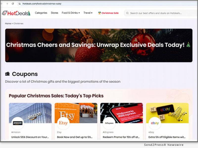 SAN FRANCISCO, Calif., Dec. 10, 2025 (SEND2PRESS NEWSWIRE) — HotDeals, the trusted online destination for verified coupon codes and discounts, today announced the launch of its dedicated Christmas Savings Hub to help shoppers stretch their holiday budgets on gifts, travel, and everyday essentials.