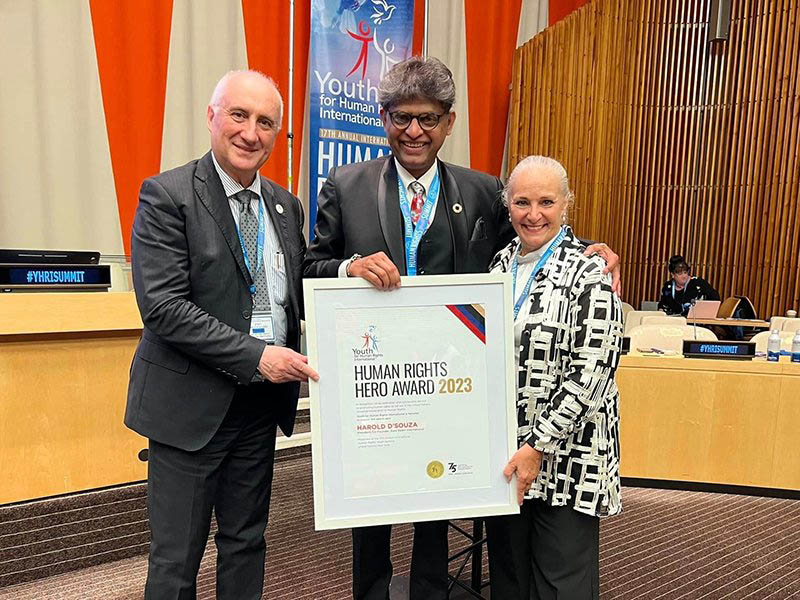Youth for Human Rights International honored D’Souza earlier this year, presenting him with its Human Rights Hero Award in July 2023 at United Nations headquarters in New York.