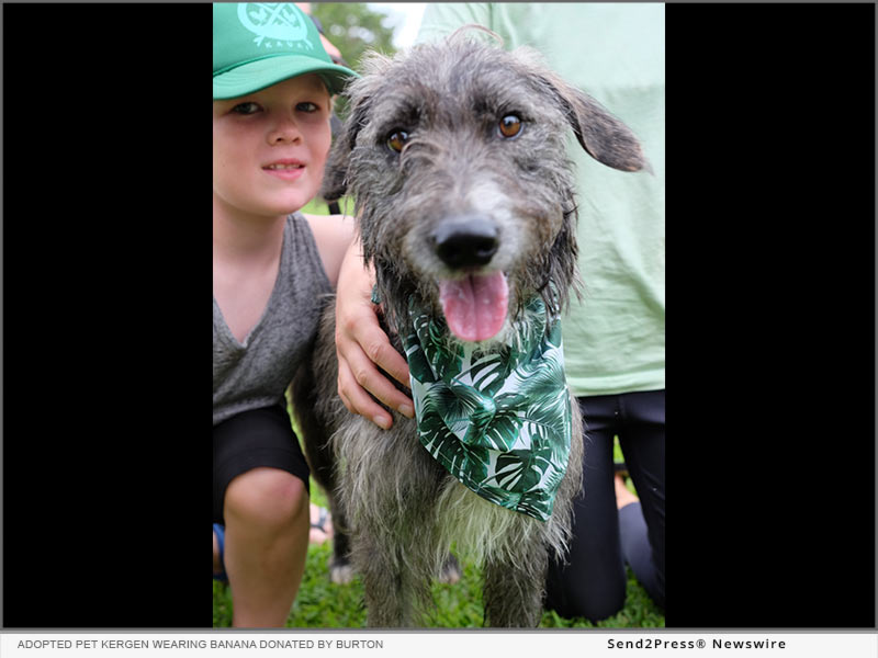PHOTO CAPTION: Adopted pet Kergen wearing bandana donated by Burton.