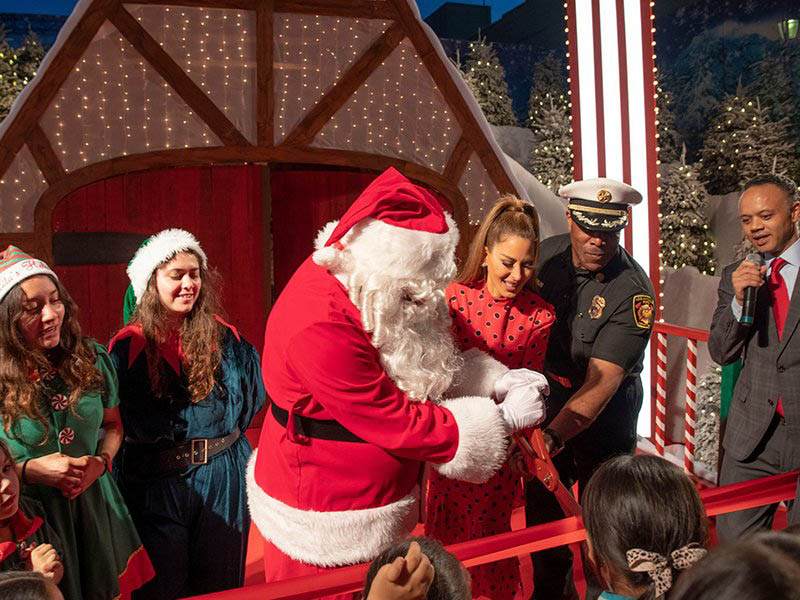 Once the ribbon was cut, the fun began, including live entertainment, face painting, and Santa, who held court with his elves in his cabin where he gave out Christmas gifts and posed for photos with the kids.