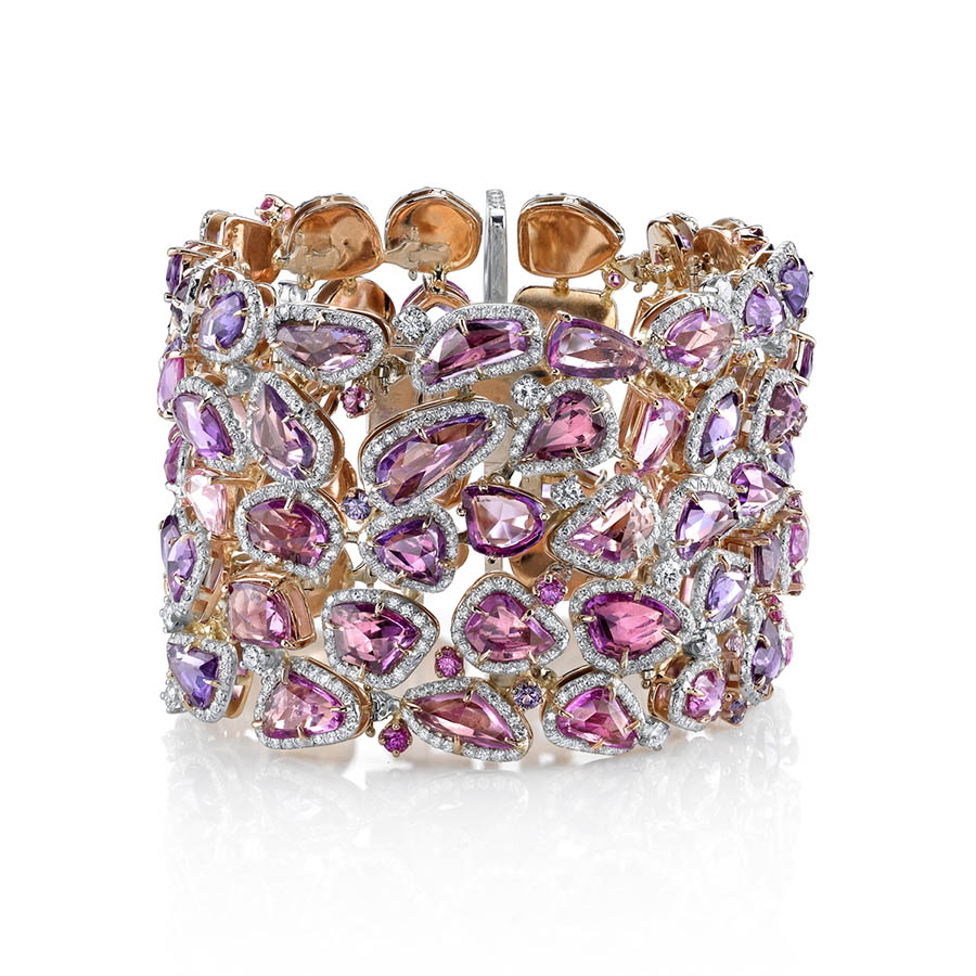 Image caption: Pink sapphire and diamond cuff bracelet from Omi Privé.