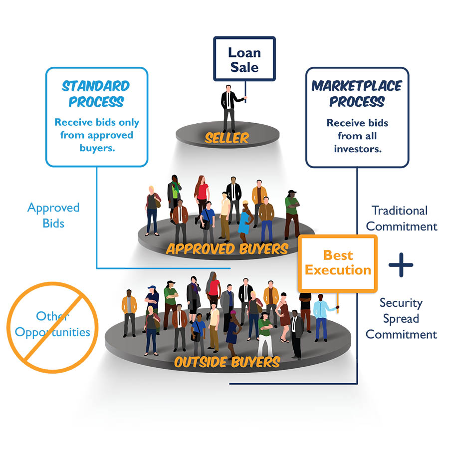 Caption: BAM Marketplace™ is the world’s first truly open loan exchange, where buyers can bid regardless of approval status, and sellers receive automated live pricing from every buyer on the platform.