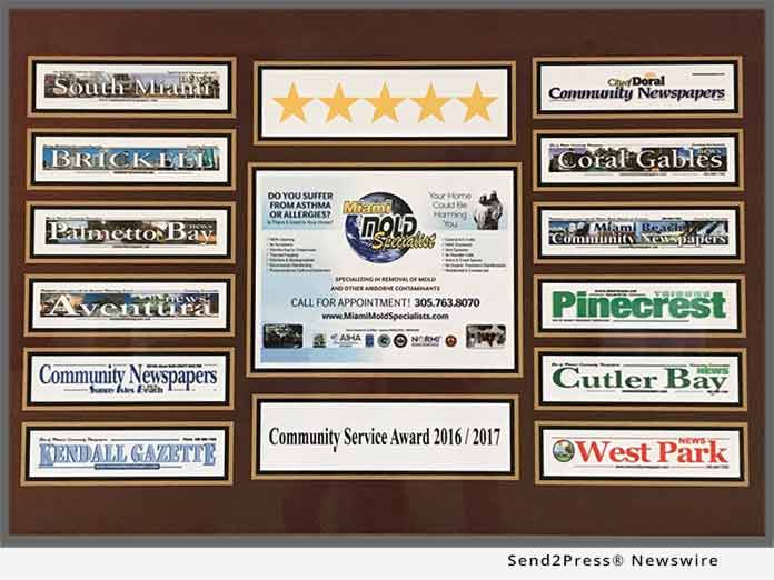 MIAMI, Fla., Aug. 31, 2018 (SEND2PRESS NEWSWIRE) –- High Tech and eco-friendly indoor environmental and mold removal service provider, Miami Mold Specialists, nominated by Google My Business for high class services rendered, excellence in community service, and impeccable customer feedback; achieving over five hundred real 5 star reviews in Google’s My Business reviews and ratings system.