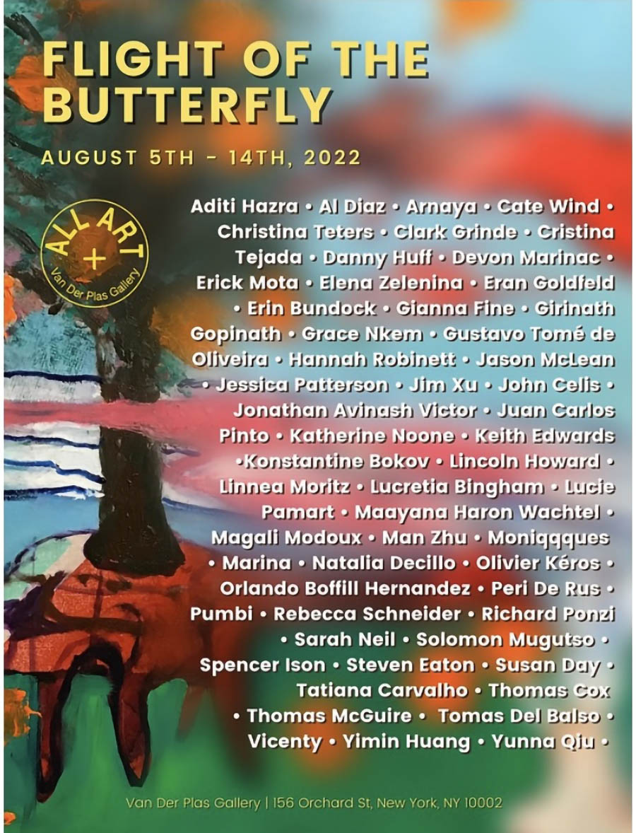 Jonathan McKay was contacted by Van Der Plas Gallery’s online curation department for the exhibition, “Flight of the Butterfly,” which hosts Virtual Gallery tours post-show. Van Der Plas is a core part of the contemporary and underground art scene in New York.