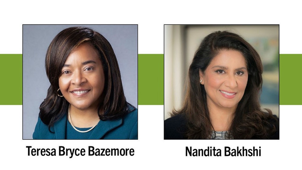 Image caption: Teresa Bryce Bazemore and Nandita Bakhshi at Financial Women of San Francisco event.