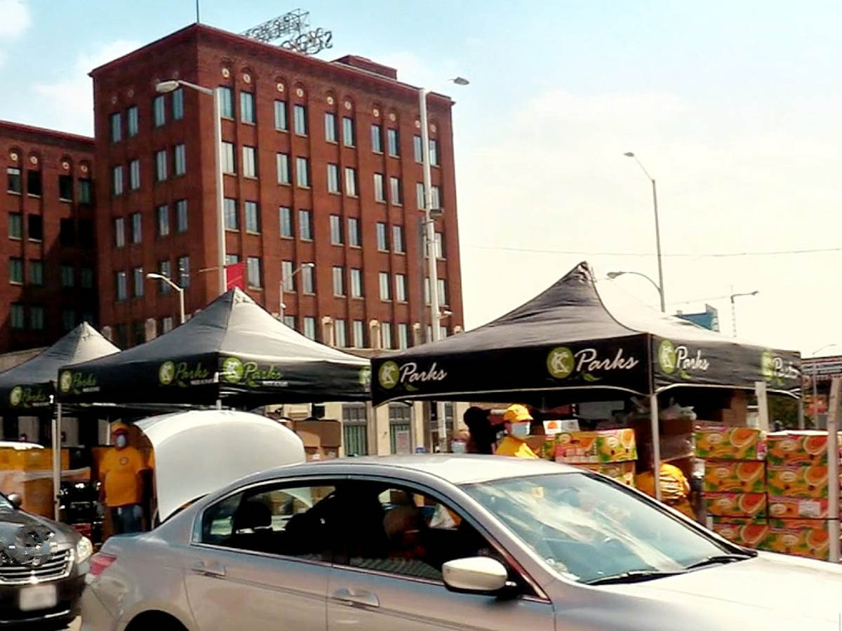 Photo Caption: The Church organized a weekly food drive in their parking lot in downtown Kansas City to help cope with the increase in food insecurity throughout the city.