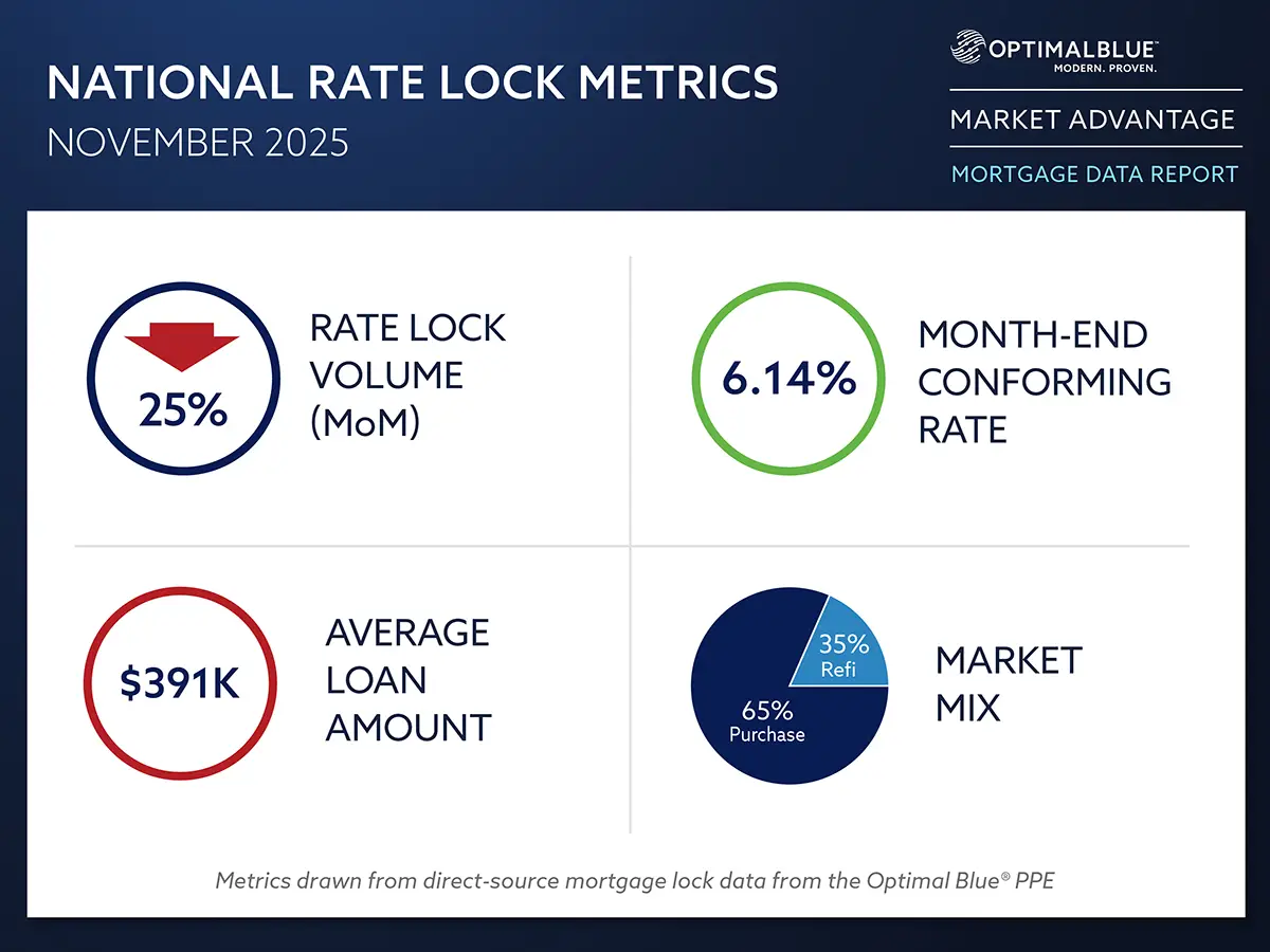 To view the full November 2025 Market Advantage report, complete the free subscription form: https://engage.optimalblue.com/market-advantage. Subscribers receive a report PDF each month with the latest data. Members of the press are eligible for special, advance access each month and should contact Olivia DeLancey to be added to the media list.