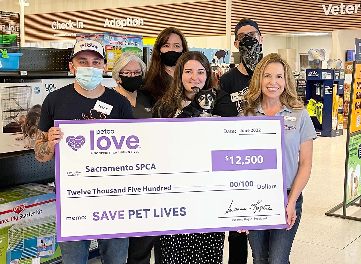 PHOTO CAPTION: Staff from Petco and the Sacramento SPCA gathered for the check presentation at the Folsom retail store on June 23, 2022.