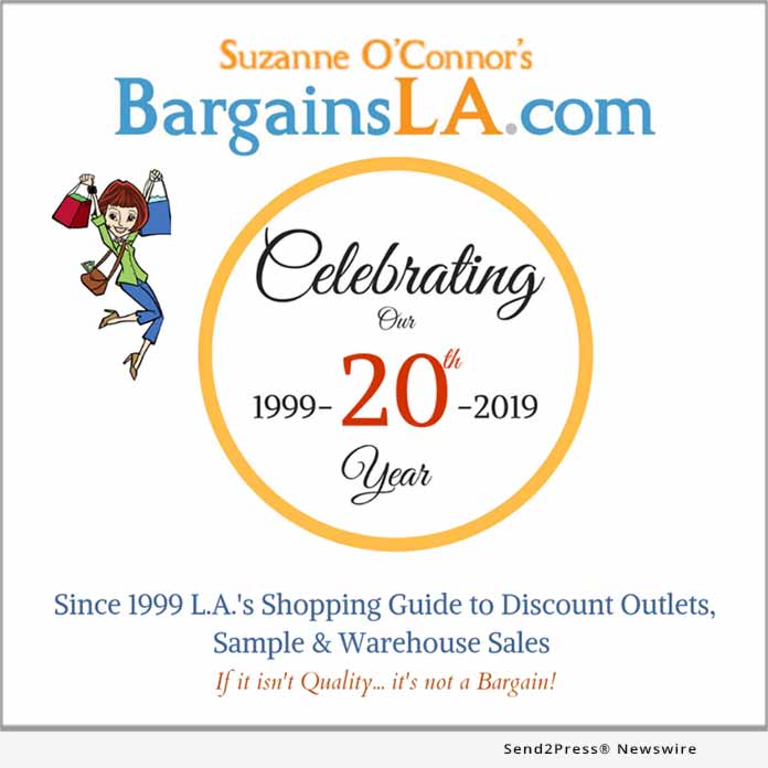 LOS ANGELES, Calif., Oct. 8, 2019 (SEND2PRESS NEWSWIRE) — BargainsLA.com, is Southern California’s premier bargain shopping guide to discount outlets, sample sales, warehouse sales and liquidation outlets. Since October 1999, BargainsLA’s founder, Suzanne O’Connor, has reviewed over 1,000 “Off Price” discount outlets and posted over 15,000 sample sales and warehouse sales.