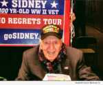 The No Regrets Tour is offering every American an opportunity to meet one of the few remaining WWII veterans. Sidney Walton, who just turned 100 and is now one of America's oldest WWII vets, was born Feb 11, 1919 in NYC. He joined the Army in 1941, nine months before Pearl Harbor, to fight Hitler and rescue Europe. Little did he know in less than a year he'd be fighting to save the U.S. He served in the 34th infantry, 8th division, where he rose to the rank of corporal. He returned to New York City in 1946, after completing five years of service. He hopes that WWII, the most horrific war ever fought in the history of the planet, is the last world war.