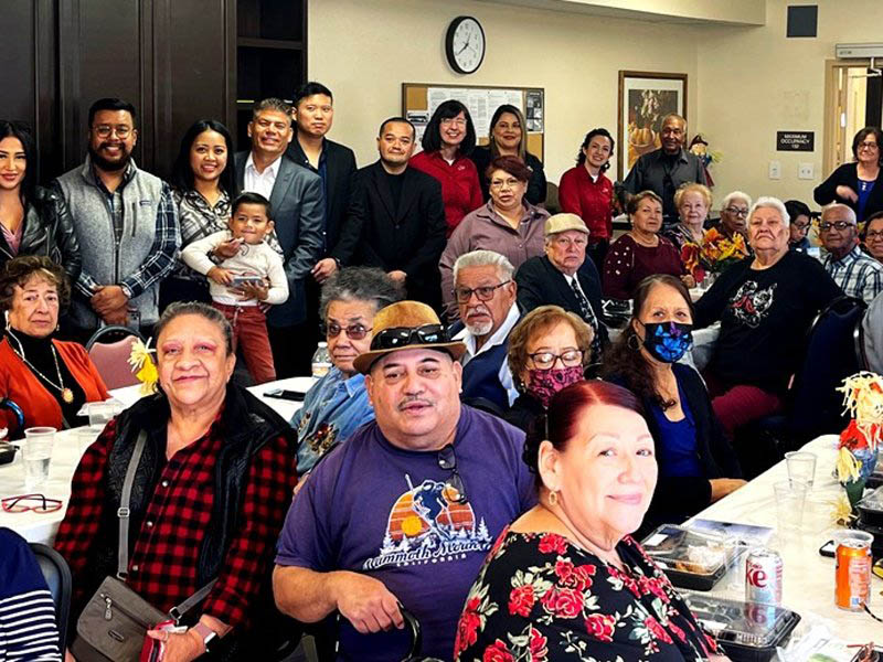 Photo Caption: Commerce Mayor Hugo Argumedo and volunteers from Bridge Publications provided a holiday luncheon to local seniors to let them know how much they are appreciated.