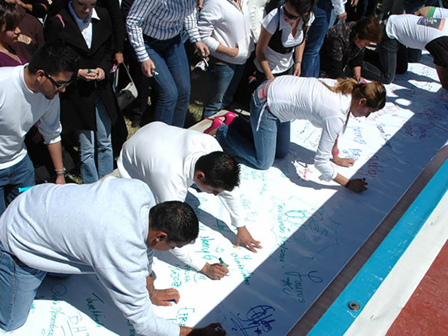 PHOTO CAPTION: After learning the truth about drugs from Foundation for a Drug-Free World, youth sign a pledge to live drug-free.