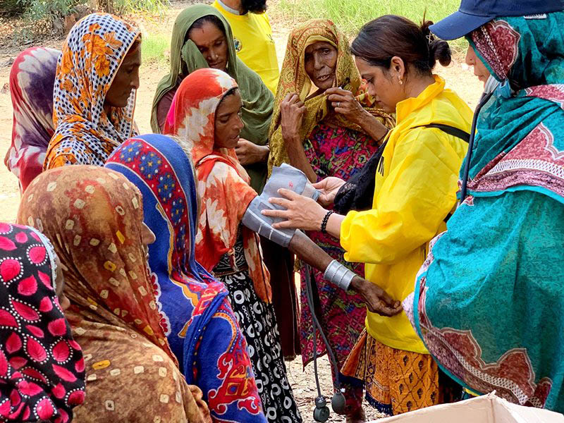 CAPTION: Doctor on the Scientology Assist Team provides care in a flood-damaged region of Pakistan.