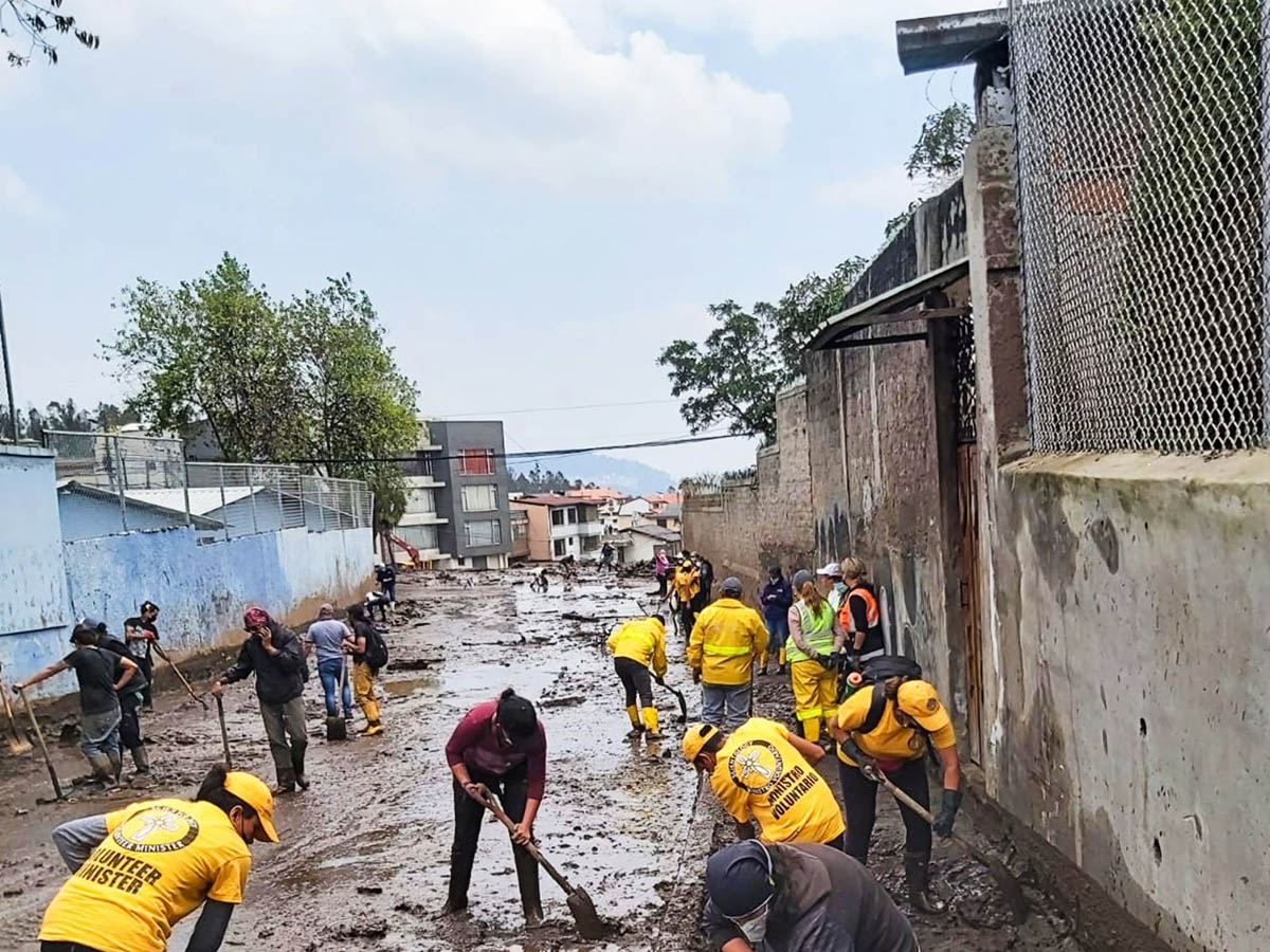 PHOTO CAPTION: Scientology Volunteer Ministers of Quito, Ecuador, respond to the devastating February landslide.