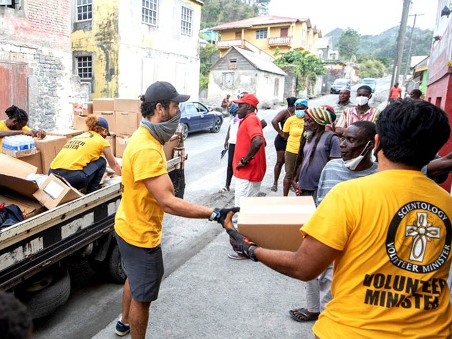 PHOTO CAPTION: Scientology Volunteer Ministers distribute urgently needed supplies to the people of St. Vincent and the Grenadines.