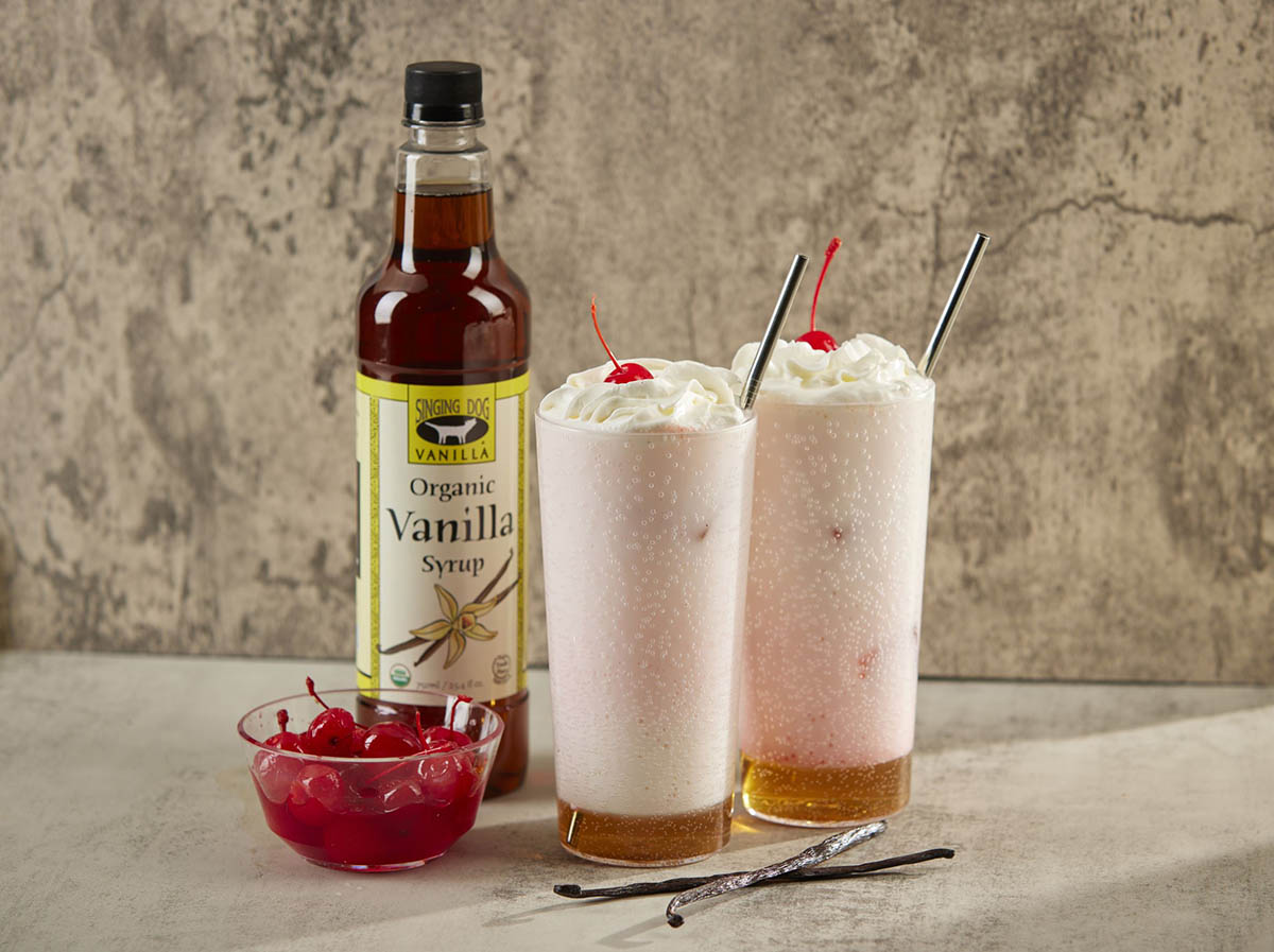 *Photo caption: Vanilla Italian Sodas made with organic vanilla syrup from Singing Dog Vanilla