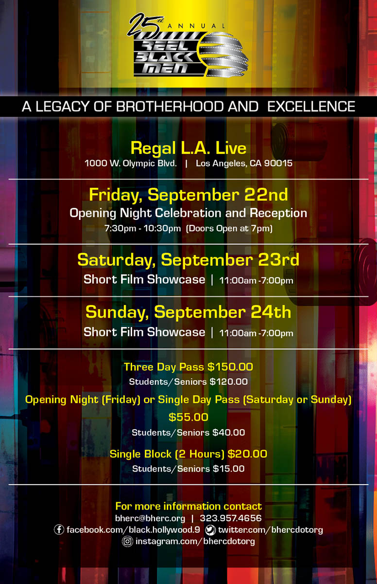 The Reel Black Men Short Film Showcase began twenty-five years ago to celebrate and highlight dynamic emerging Black male filmmakers. The showcase and festival of short films directed by some of the nation’s talented emerging Black male filmmakers will feature a dialogue following each film block. The celebration will take place over three days, screening 47 films. “This year we are proud of the amazing filmmakers and films. If given the opportunity, these outstanding filmmakers will impact Hollywood for generations to come,” stated John Forbes, BHERC Executive Director.