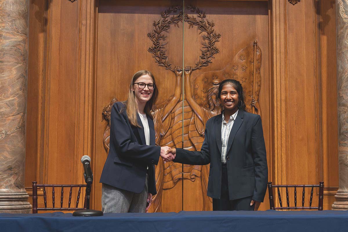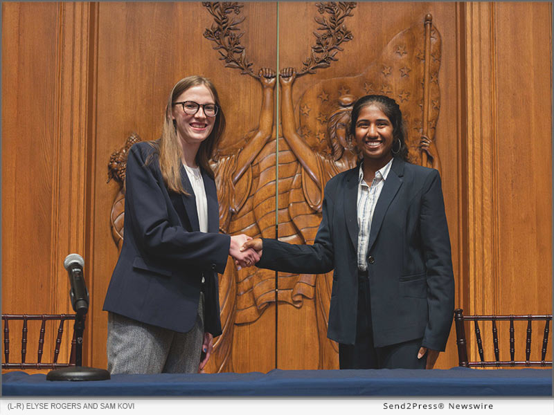 Photo caption: (L-R) Finalists, Elyse Rogers, a senior from Classical Christian Academy in Missouri, and Sam Kovi, a sophomore from Lambert High School, part of the Forsyth County School District in Georgia.