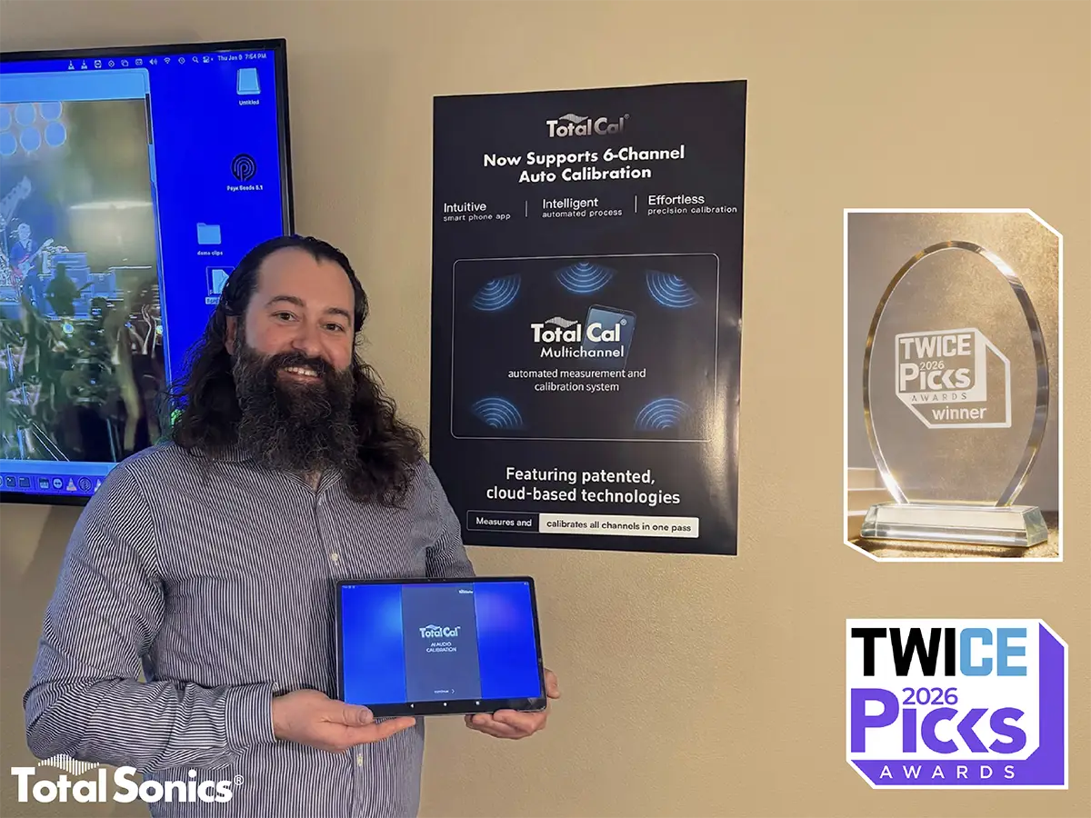 Image caption: Total Sonics proudly displays the Total Cal Multichannel auto-calibration system, a recipient of the prestigious 2026 TWICE Picks Award.