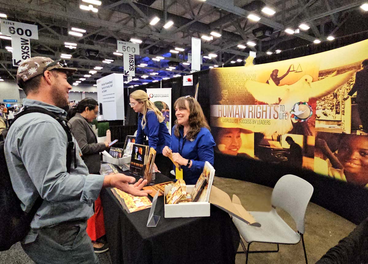 Photo caption: Representatives from United for Human Rights International and the local chapter supported by the Church of Scientology Austin brought their education campaign to the SXSW EDU conference to introduce those attending to the program’s human rights education materials.