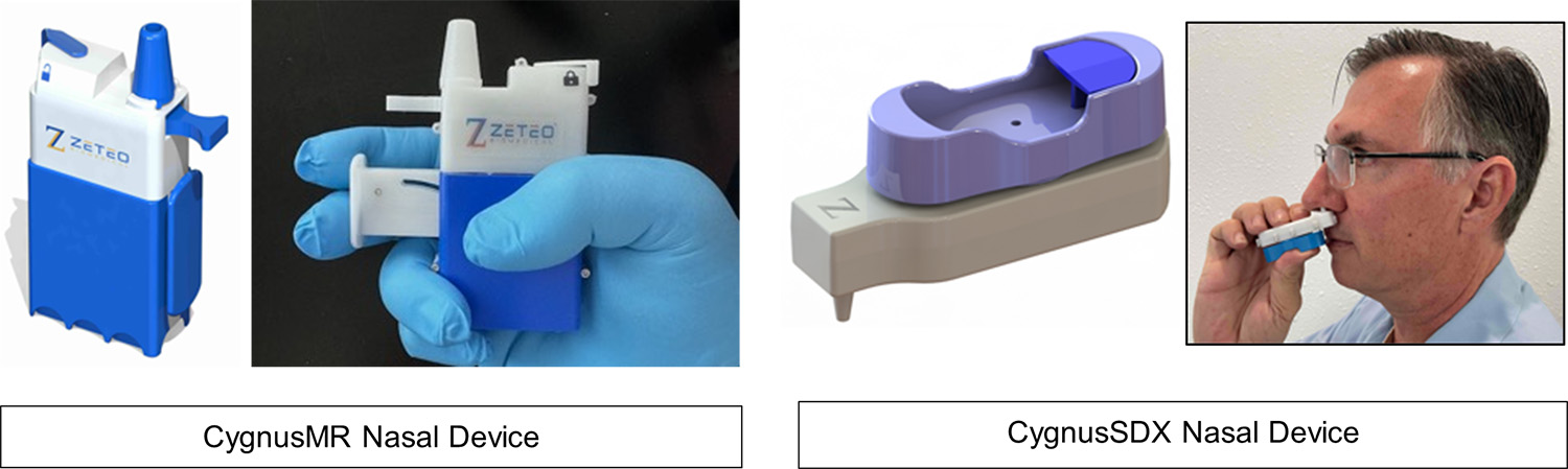 Image Caption: Zeteo Biomedical Introduces CygnusMR™ and CygnusSDX™ Delivery Devices for Nasal Administration of Dry Powder Drugs and Biologics.